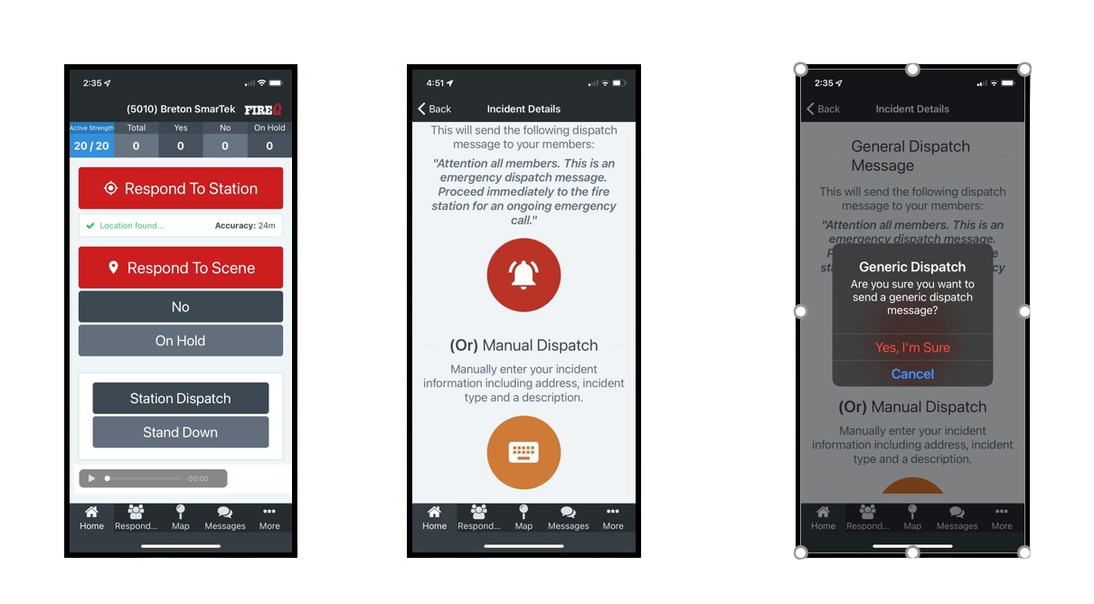 General Dispatch: A one-button solution that sends an alert to firefighters advising them to report the fire station for an ongoing emergency.