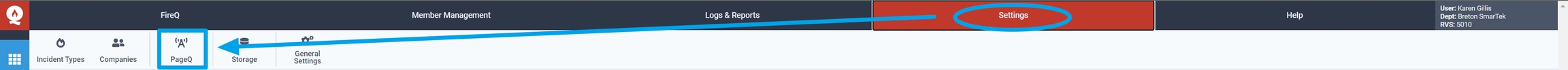 FireQ coders configure PageQ using a recording of department tones. and create an activation code for users. To activate PageQ, navigate to the SETTINGS tab and click the PAGEQ button.