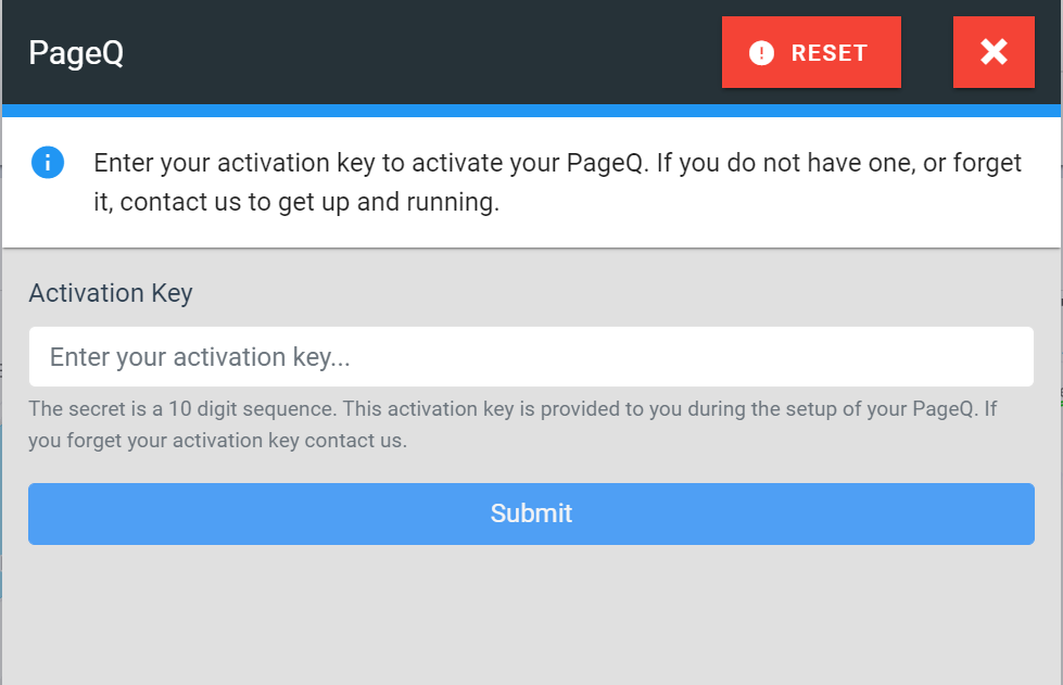 Enter the 10-digit activation key which is provided by FireQ. This will automatically download and activate the PageQ configuration files, which include the tones for which the application will be listening.