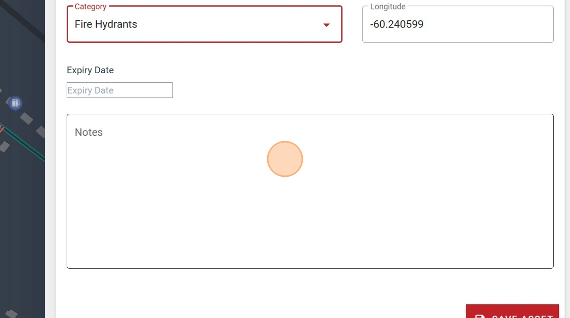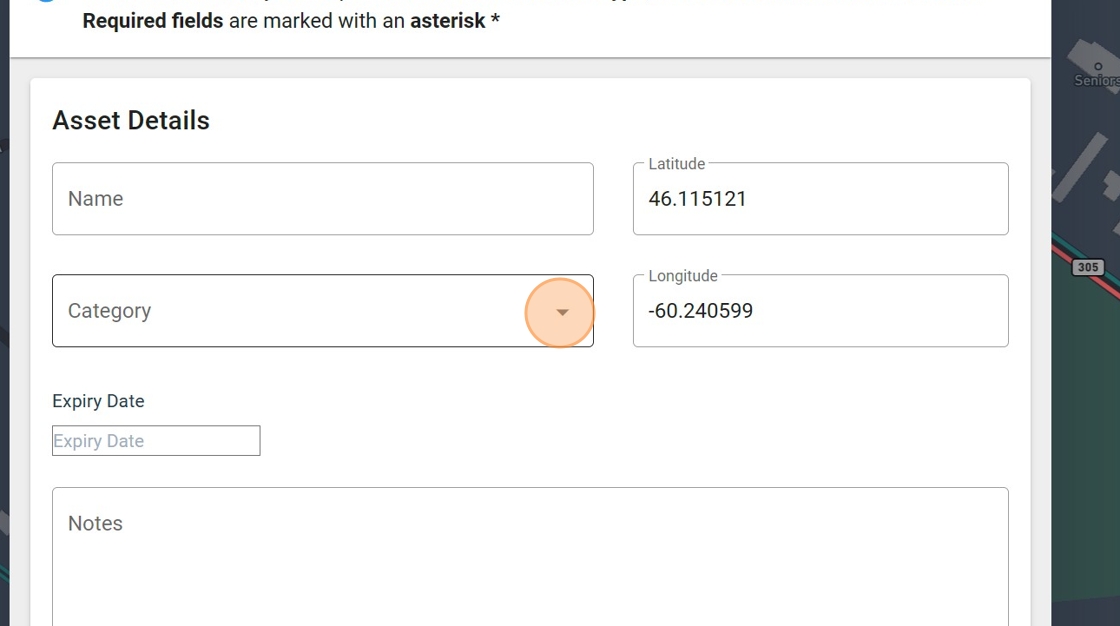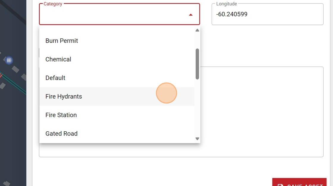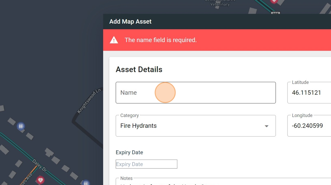 3. The "Add Map Asset" window opens with the coordinates of the asset already populated.