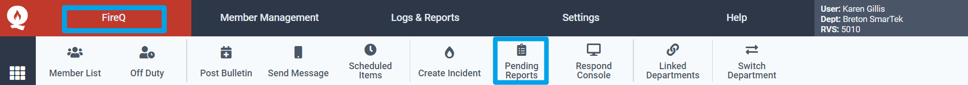 Navigate to the FireQ tab and click the PENDING REPORTS button.