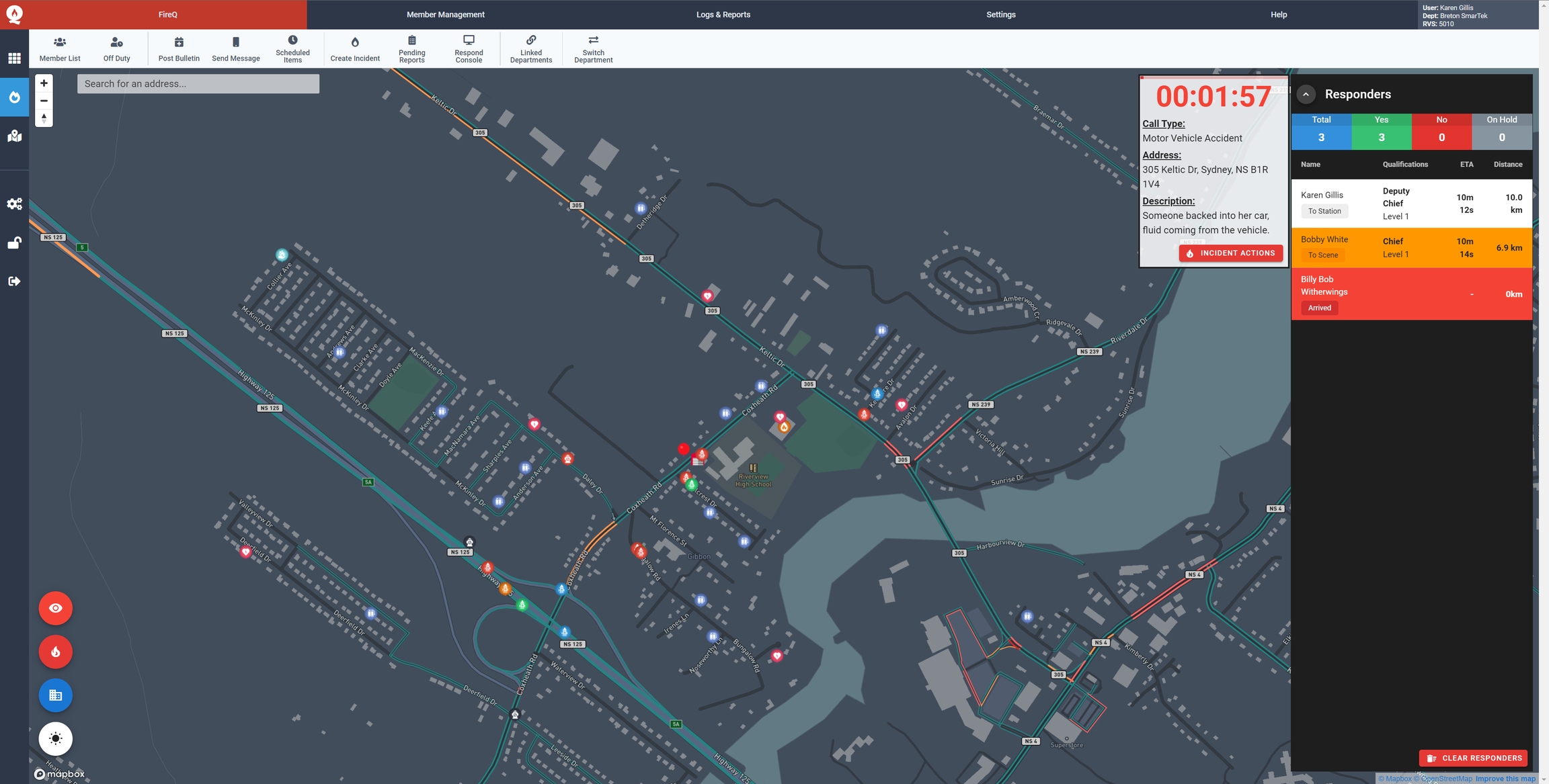 GOOD TO KNOW: many fire departments display the FireQ software on a tv in the bay area of the fire station. During an active emergency, firefighters arriving at the fire station can see an incident map with a list of responding firefighters.