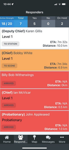The Responders List shows you a complete list of responders who said yes, no and on hold, as well as an estimated time of arrival.
