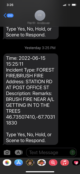 Text alerts from FireQ look like this.