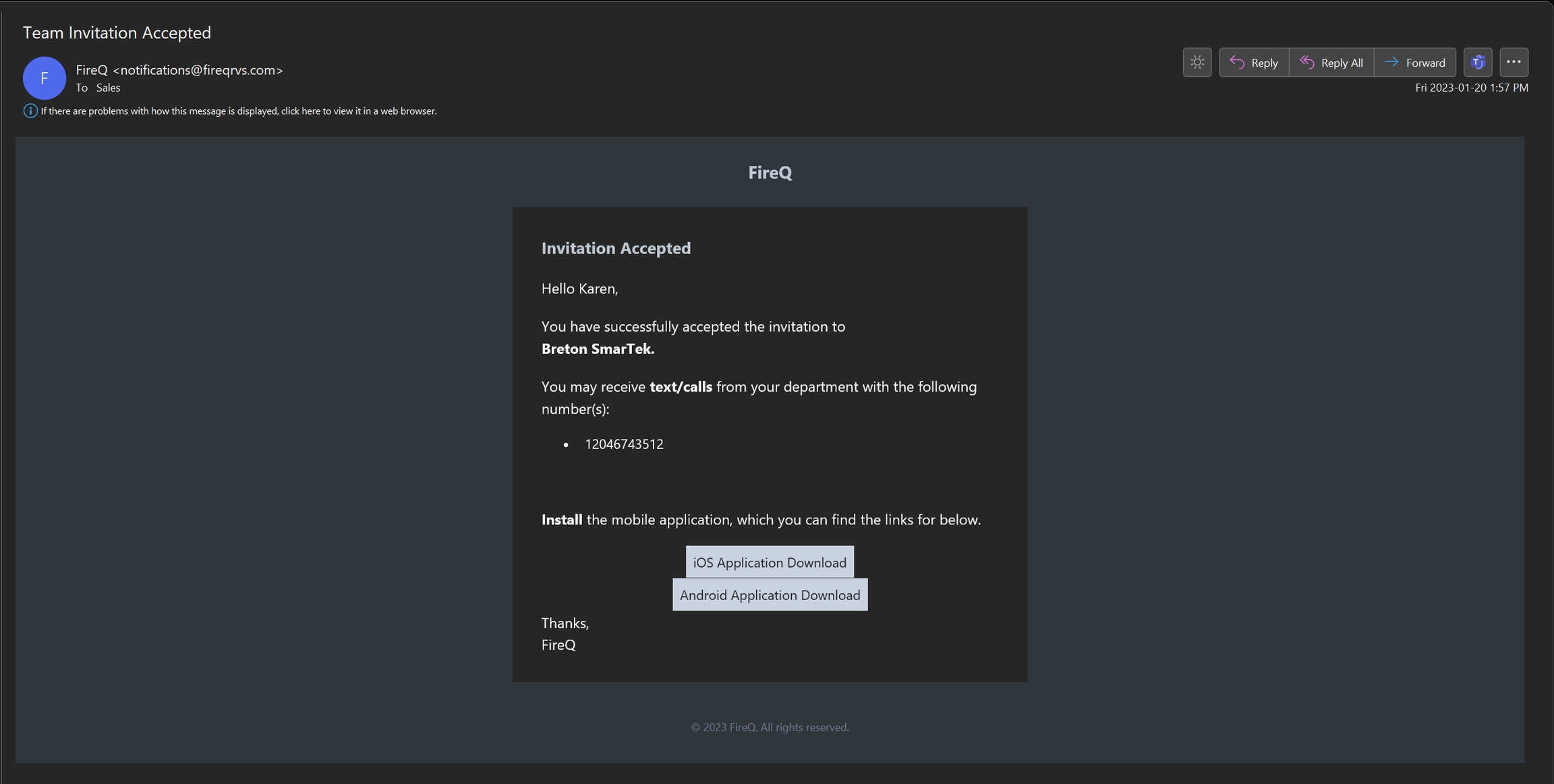 You will receive this notification that a second email with the subject line “Invitation Accepted” has been sent.