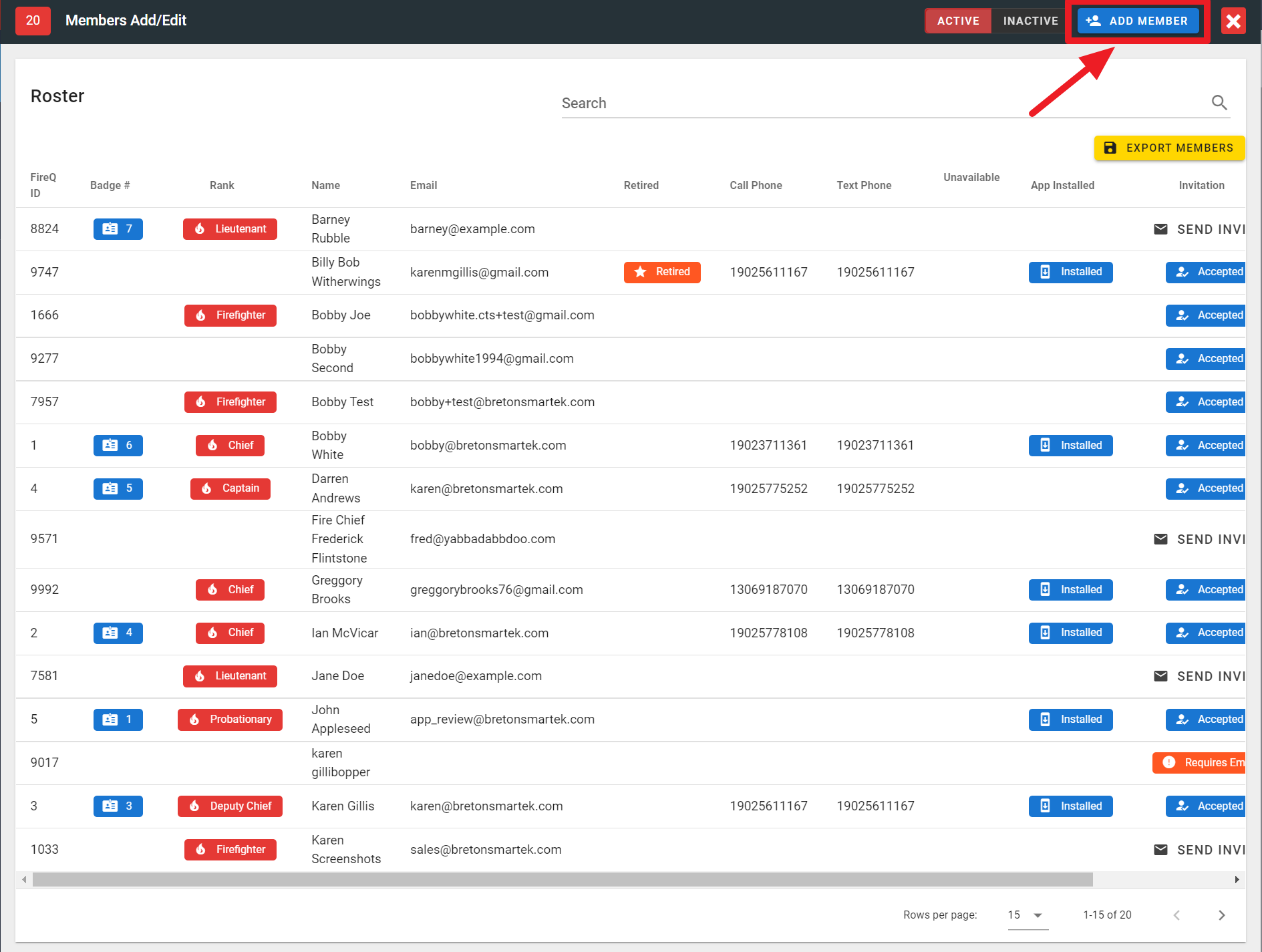 To add a new firefighter to your FireQ system, navigate to the MEMBER MANAGEMENT tab and click the EDIT MEMBERS button.