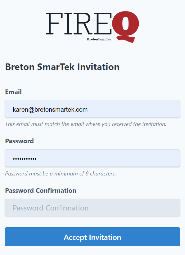 Create a password and enter it in both the password fields. Click the ACCEPT INVITATION button.