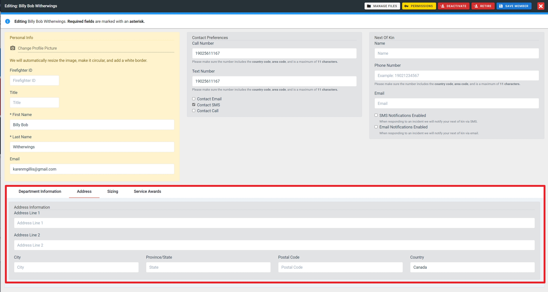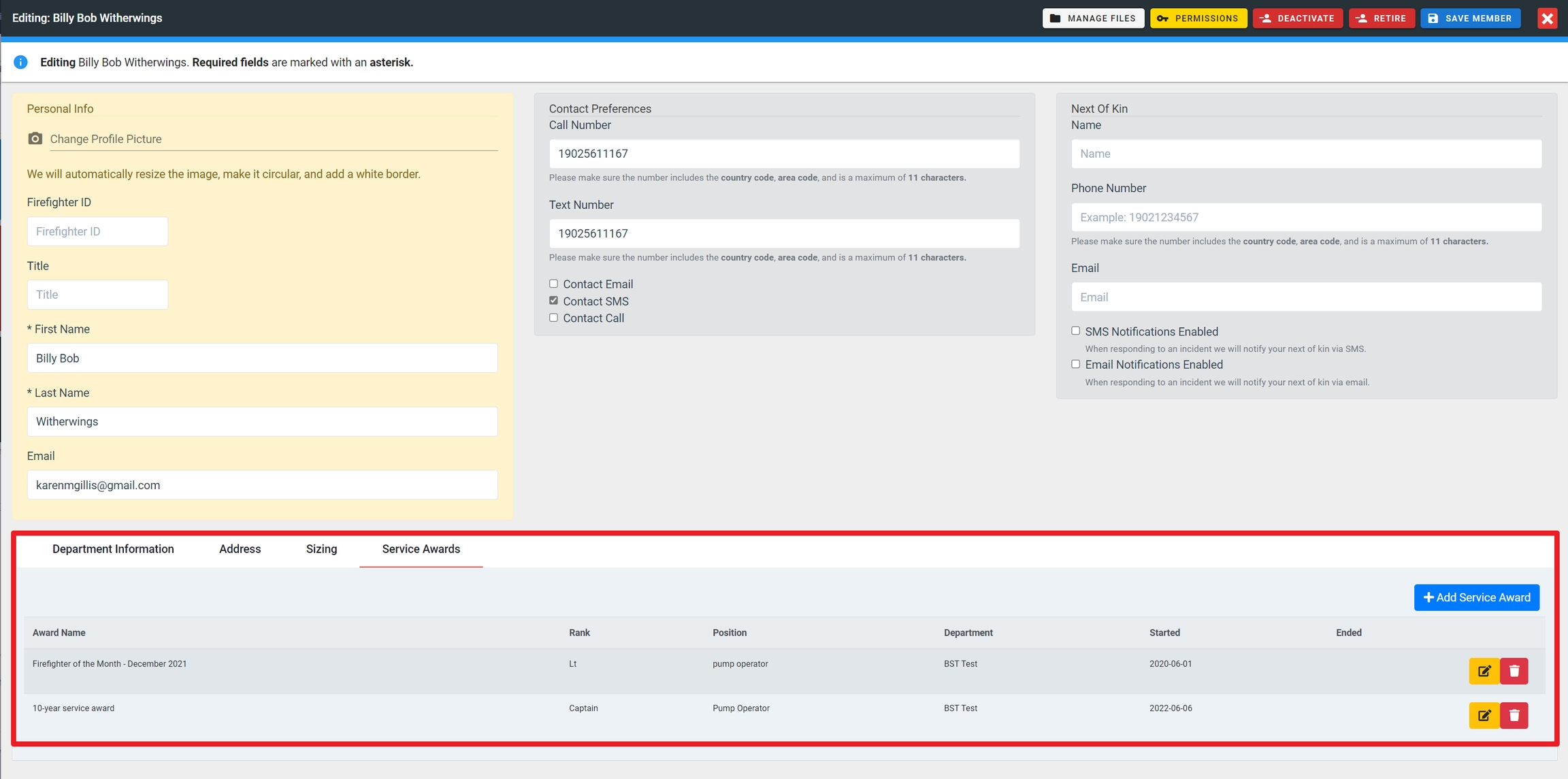 Notes - This is a place to record any other details relevant to the firefighter. Individual firefighters cannot see or change information contained here.