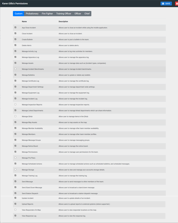 Permissions are a critical part of your system security. Permissions should be assigned based on the role the firefighter plays in the fire department.