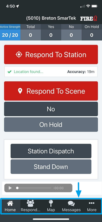 Features of the FireQ app are conveniently grouped under 5 tabs: