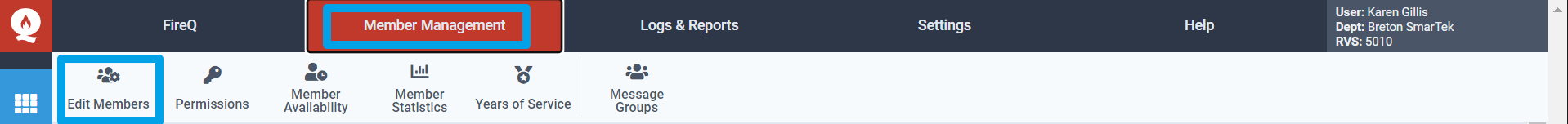To set member availability in the FireQ software, click the MEMBER AVAILABILITY button.