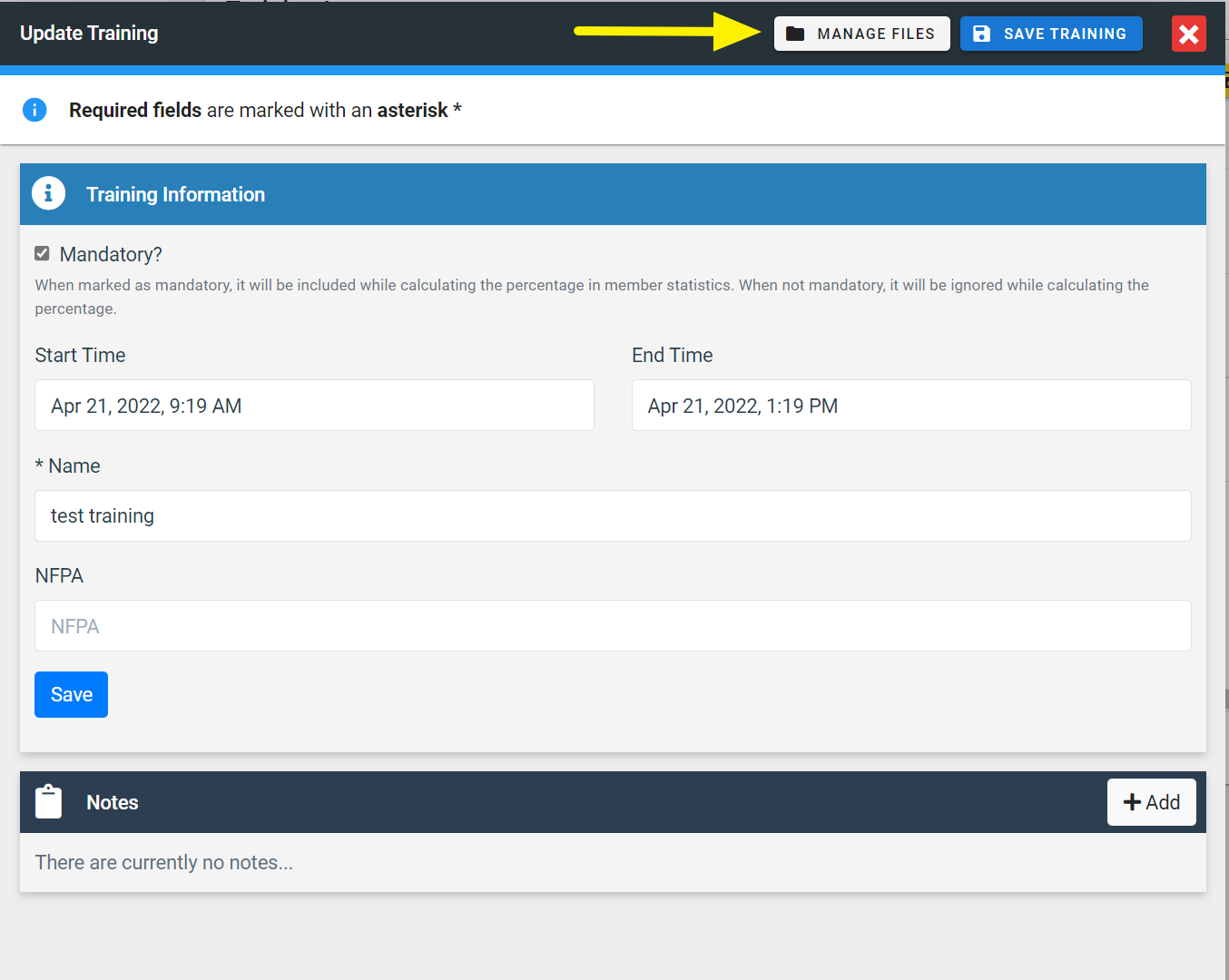You can attach supplementary files to the training log. These things could include lesson plans, performance notes, and more.