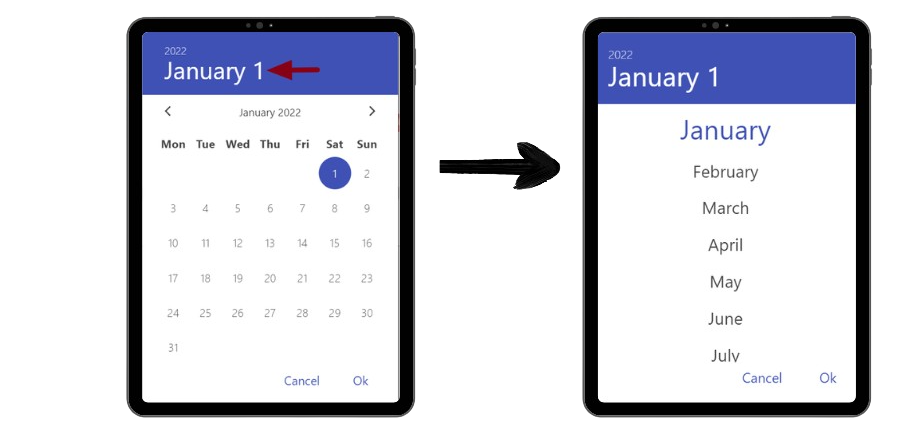 If you click on the month, a list of the months appears. Select the desired month and click OK.